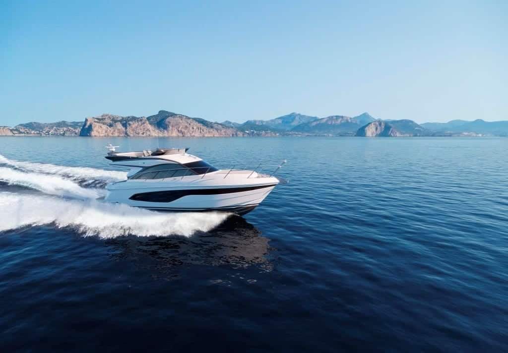 Another stunning, new, future-defining yacht design, launched by Princess Yachts in 2018, was the incredible R35. This 50 knot, high-tech sports yacht debuted at the Cannes Yachting Festival in 2018, causing a great deal of excitement. Pininfarina and Ben Ainslie Racing Technologies teamed up to create this incredible design. The technical expertise of BAR Technologies supported the creation of the Princess Active Foil System (AFS) which optimises stability and manoeuvrability while reducing drag, resulting in significant efficiency improvements. Pininfarina were responsible for the lightweight, carbon fibre monocoque hull design which enhances the yacht’s aerodynamics.