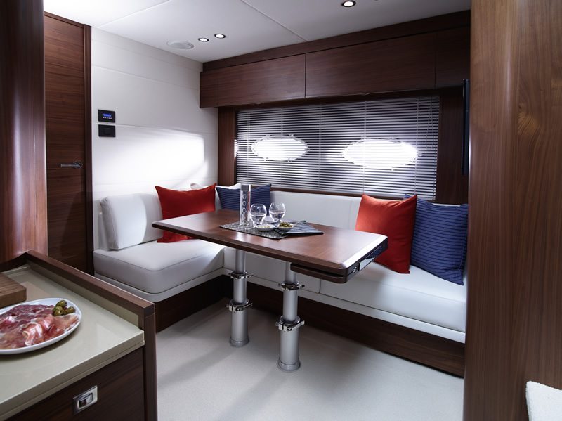 But don’t for one moment think that such attention to detail is purely the preserve of the Princess superyacht buyer. Precisely the same attention to detail is applied across the entire range. There may be less ultimate choice of layout with a smaller boat and hence less requirement for a design consultant to guide the purchasing process, but the quality, craftsmanship and design integrity remain, created by the exact same team responsible for the ‘M Class’ yachts. As indeed do the choices, with a myriad of options for woodwork, fabrics, work tops and flooring, allowing a buyer to stamp his or her individualism and create a look as personal as their signature, whatever the model. Indeed, lessons learned in the more compact environs of smaller craft often percolate up through the range as much as the style and quality of the larger yachts filters down, ensuring a cohesive design language right across the Princess family.
