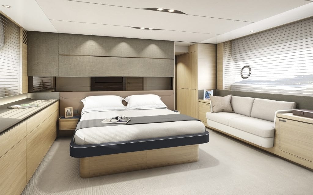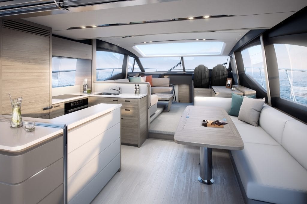 With a wide beam, three generous on-deck living areas, and tender garage capable of storing a 3.3m RIB, the S65 combines distinctive styling and high performance with expansive entertaining options.