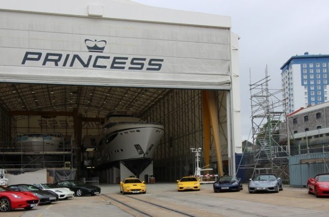 Guests from the West Country Ferrari Club were invited by the Princess Motor Yacht Sales Plymouth office for an exclusive tour of the Princess Yachts’ manufacturing site and sea trial on the stunning Princess V58 sports yacht on Saturday 13th August.