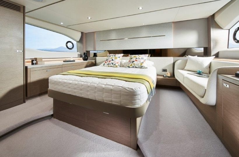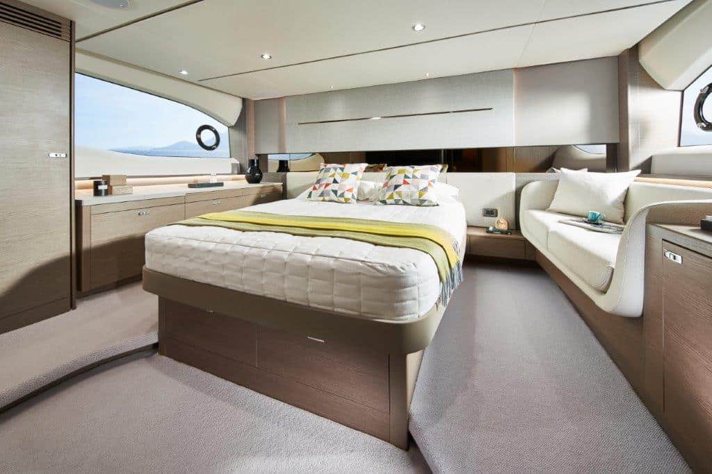 The V55 will appeal to V Class loyalists potentially looking for a step up in size and performance, as well as new Princess customers searching for elegance and purity of purpose. The all-new Princess deep-V resin-infused hull of the V55 not only provides a smoother, more effecient ride but also creates more space below deck, with design features making use of every remote corner. Complementing this, there are two powerful Volvo D13 engines which deliver up to 2,000mhp with a top speed of up to 37 knots, ensuring a thrilling ride whatever the weather.