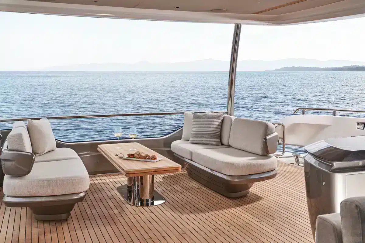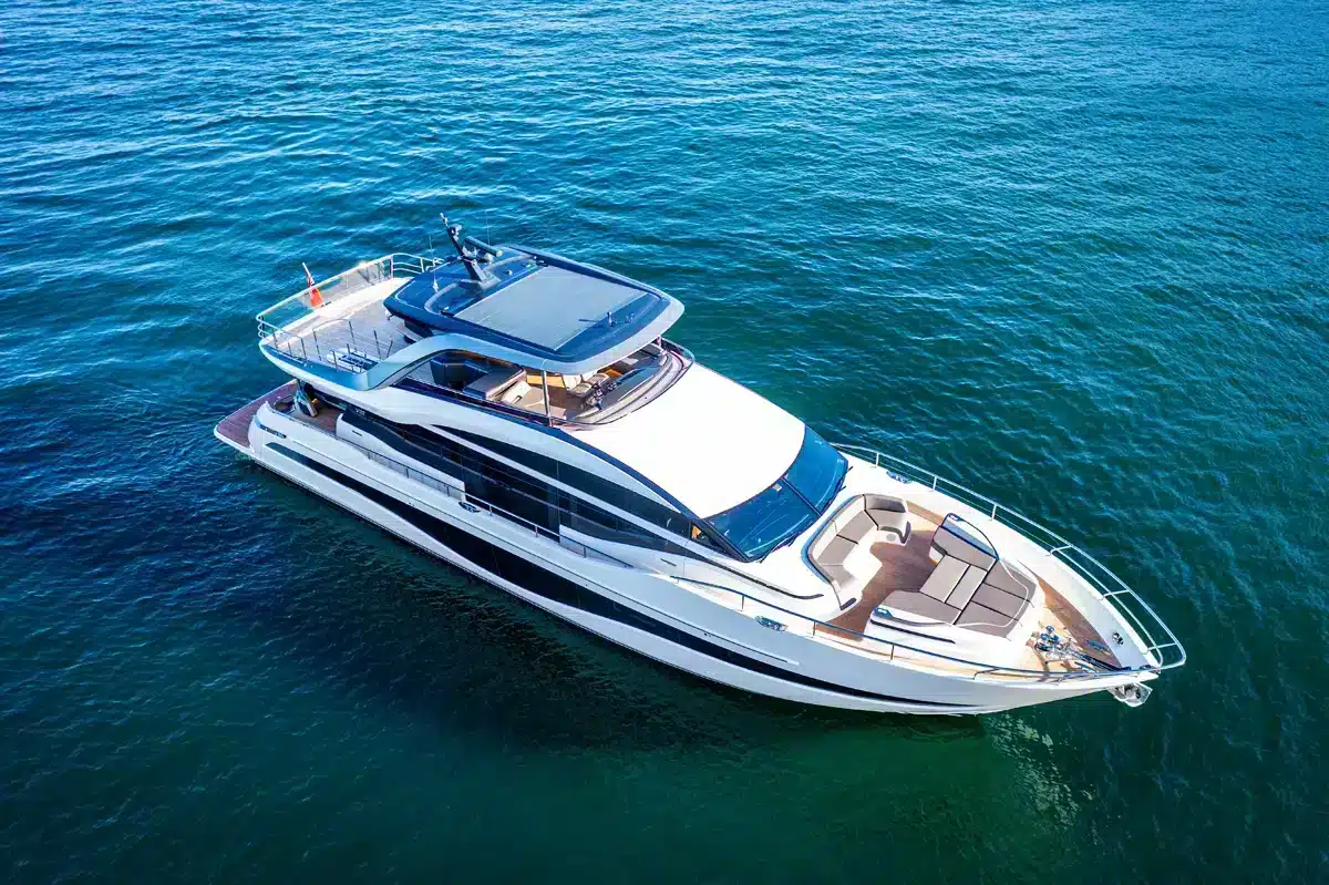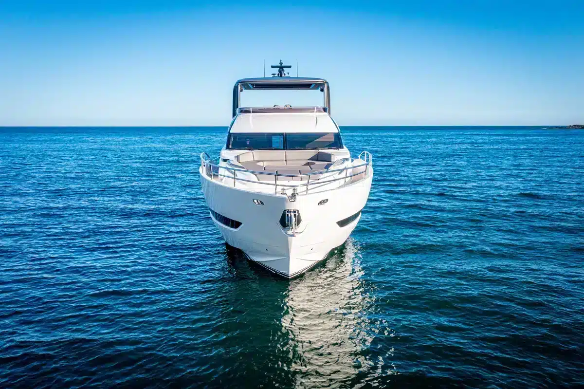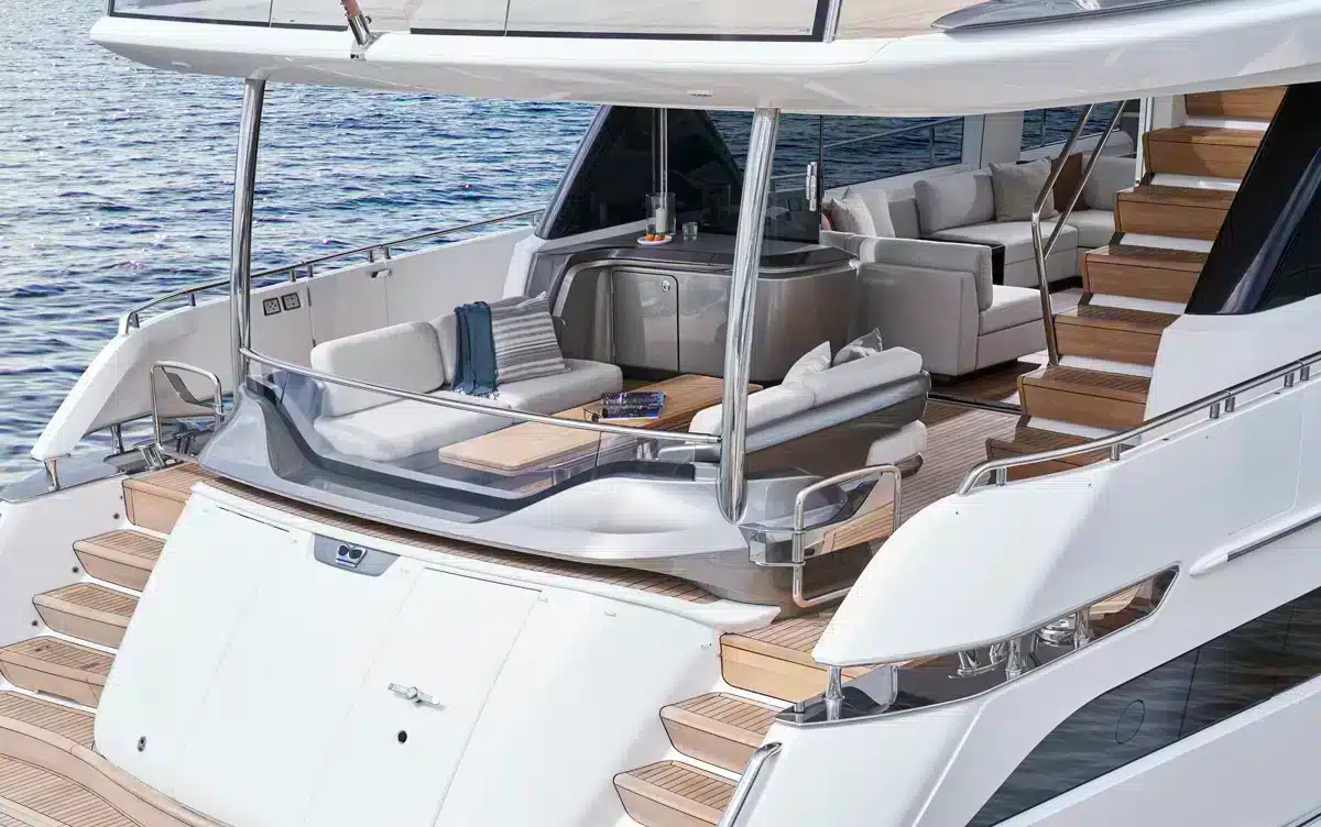 Her innovative flexible galley arrangement allows you and your guests to choose between open plan and enclosed galley at the touch of a button, so you can open yourself up to the elements or close away for comfortable nights in seamlessly. Three key items have been defined in the design of this new addition to the Y Class range – light, space and guest comfort. This is increasingly apparent through her al-fresco living flybridge, to her large aft sunpad and forward-facing seating area, encompassing her spacious interior. An aft-mounted, hydraulic swim platform allows guests to cool off and enjoy water sports making this Y85 the perfect craft for entertaining on the water.