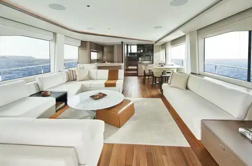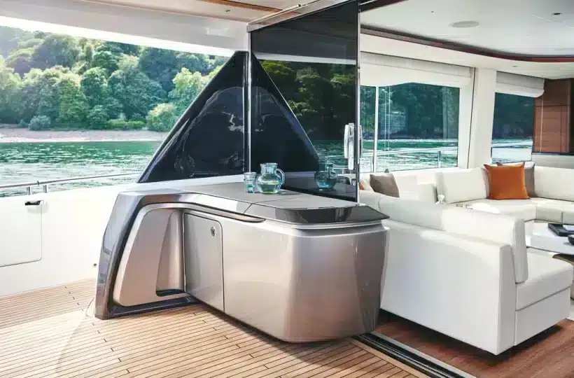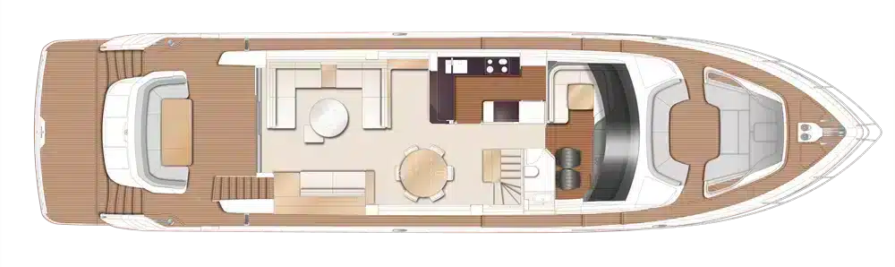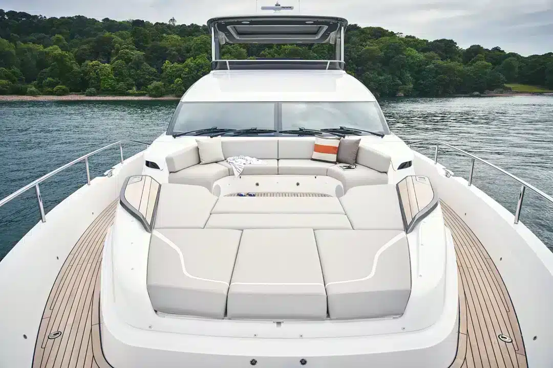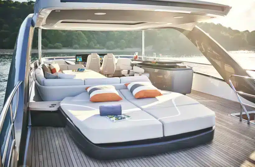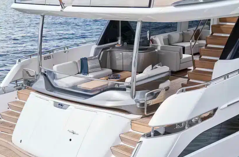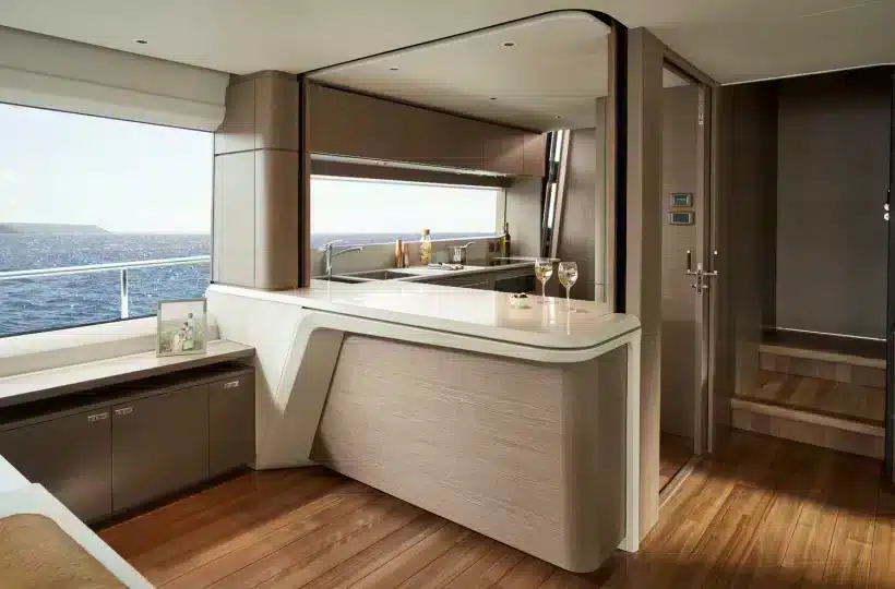 Her innovative flexible galley arrangement allows you and your guests to choose between open plan and enclosed galley at the touch of a button, so you can open yourself up to the elements or close away for comfortable nights in seamlessly. Three key items have been defined in the design of this new addition to the Y Class range – light, space and guest comfort. This is increasingly apparent through her al-fresco living flybridge, to her large aft sunpad and forward-facing seating area, encompassing her spacious interior. An aft-mounted, hydraulic swim platform allows guests to cool off and enjoy water sports making this Y85 the perfect craft for entertaining on the water.