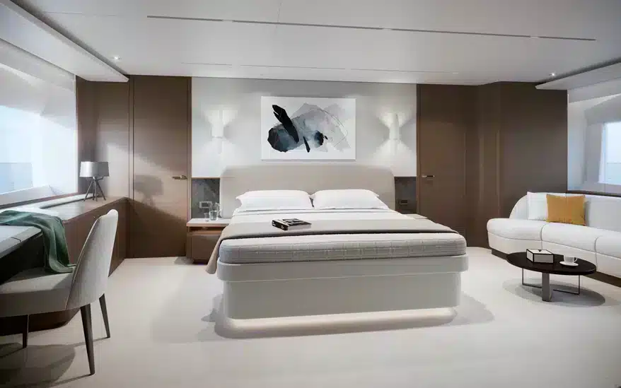 Her exterior styling is evolved from the latest Princess models and features the longest and most expansive hull windows ever installed on a Princess yacht, giving guests incomparable panoramic views even from her main and lower decks. Rivalling the Princess M Class, the space on board the Princess Y95 will surely impress whilst her interior material and finishing will leave viewers in awe.