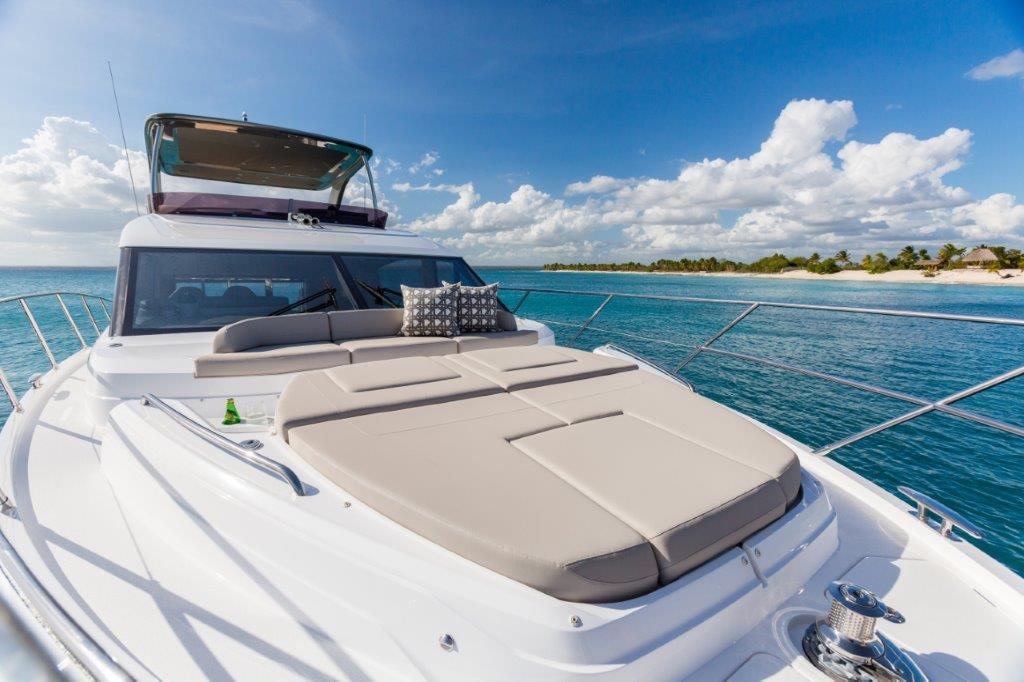 Twin helm seats have been redesigned with fore and aft adjustment for helmsman. Fantastic open space to relax can be found forward with the seating area and generous sunpad.