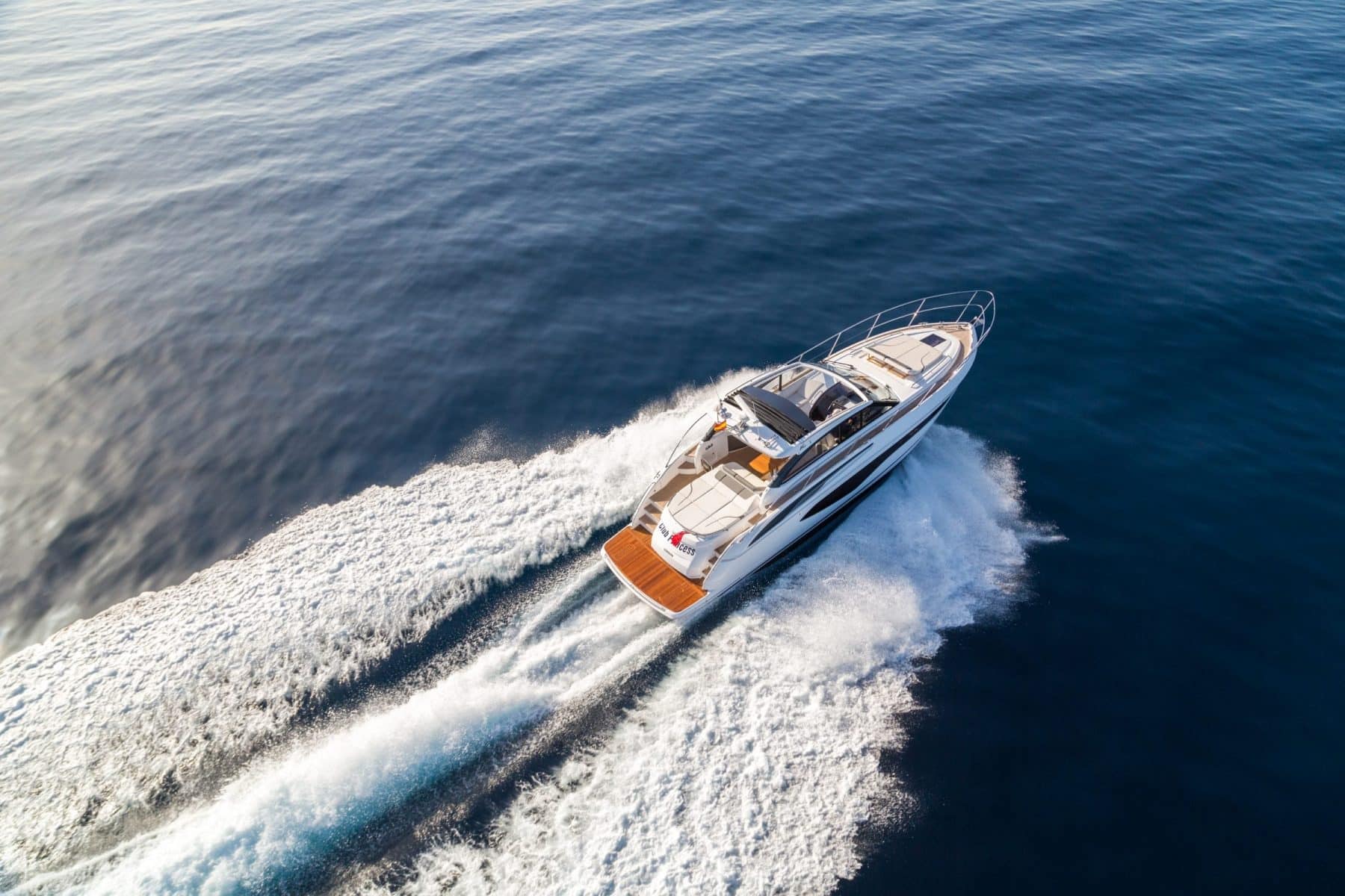 The versatile new Princess V50 proudly features the all-new V Class exterior design. Available with either an enclosed or open main deck configuration, her elegant style is matched only by her responsive power, reaching speeds up to 32 knots. Dynamic port light windows cascade the length of her deep-V hull, flooding the saloon and